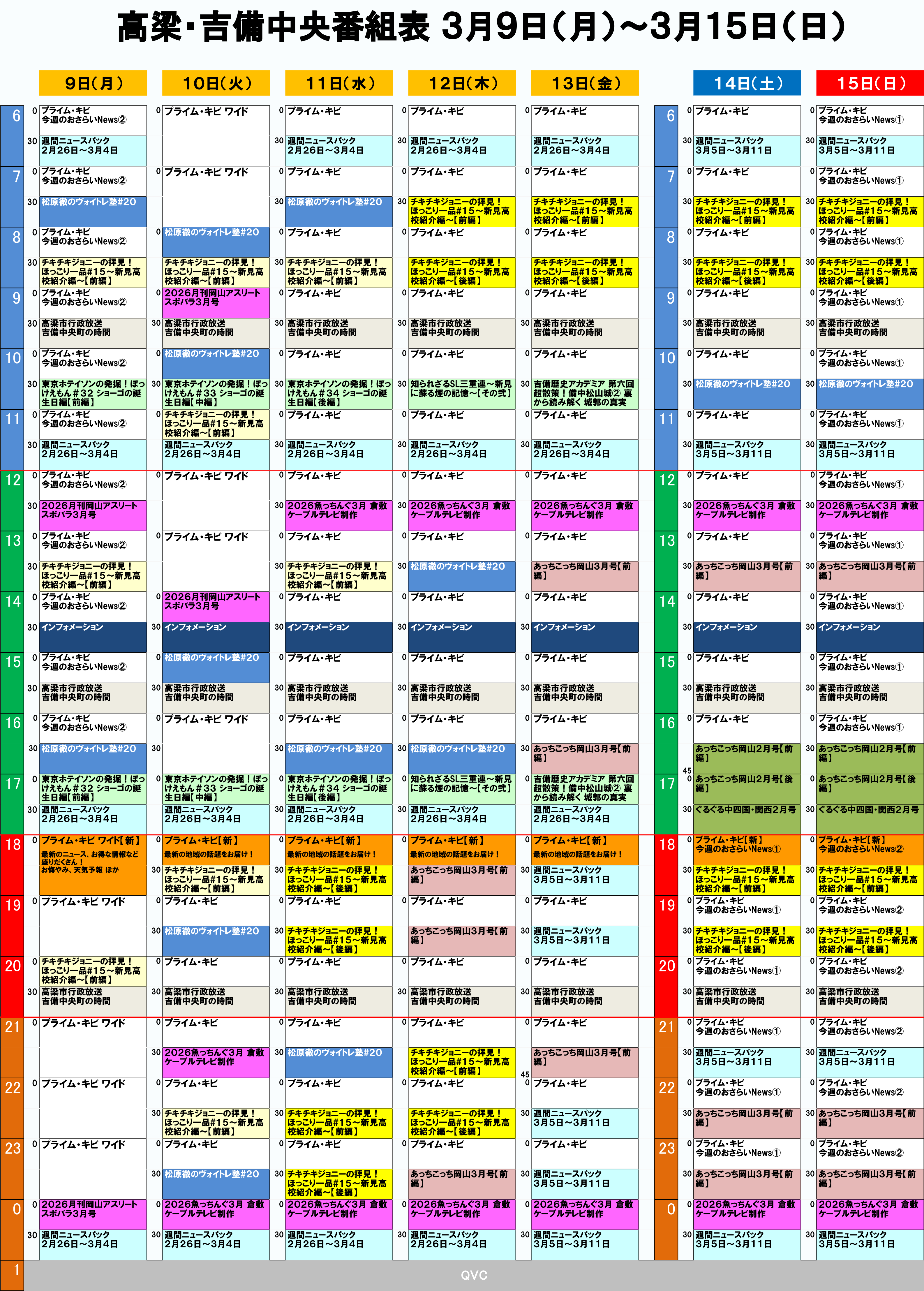 週間番組表(3/9~3/15)