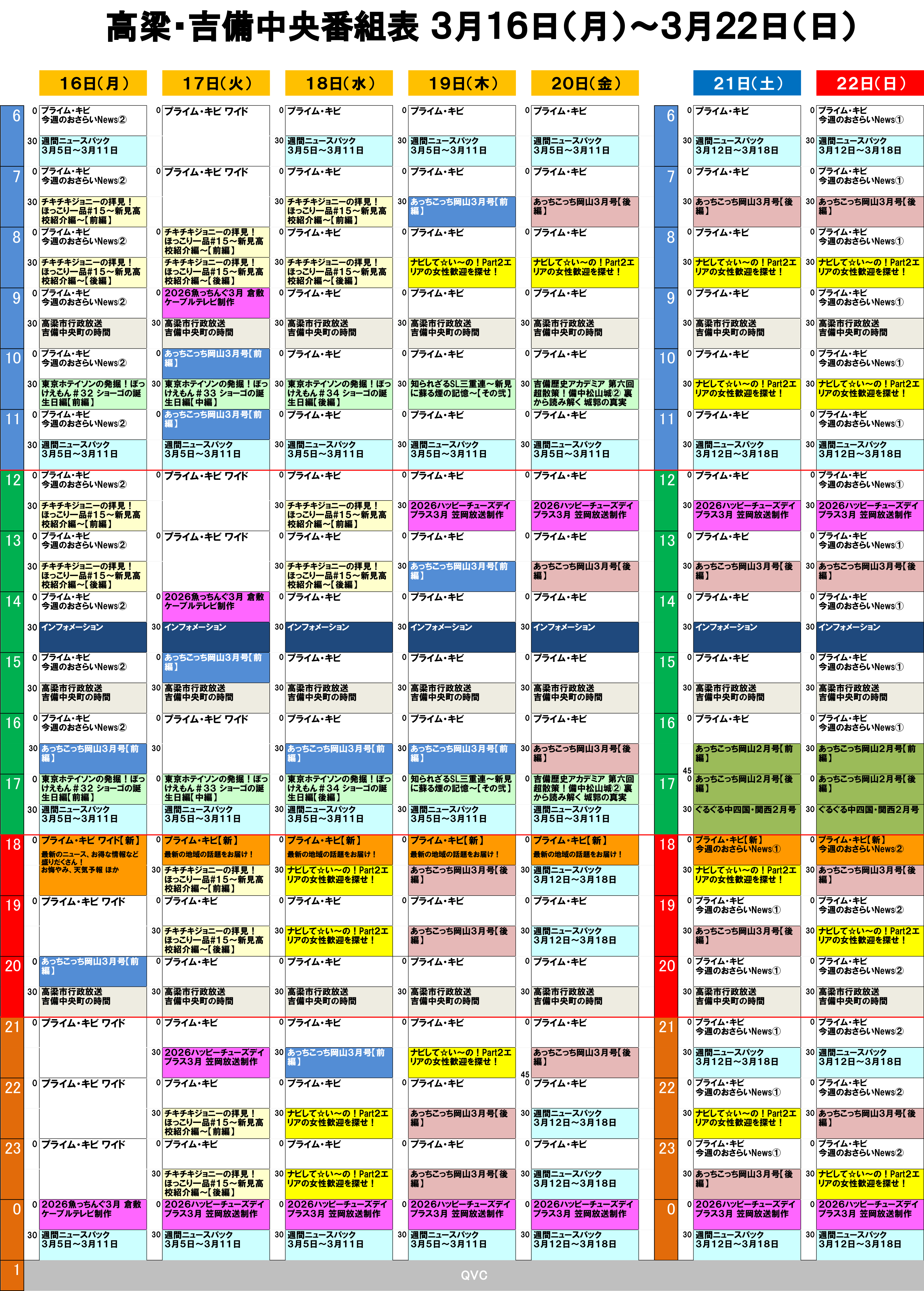 週間番組表(3/16~3/22)